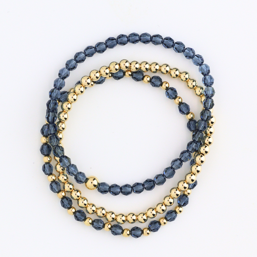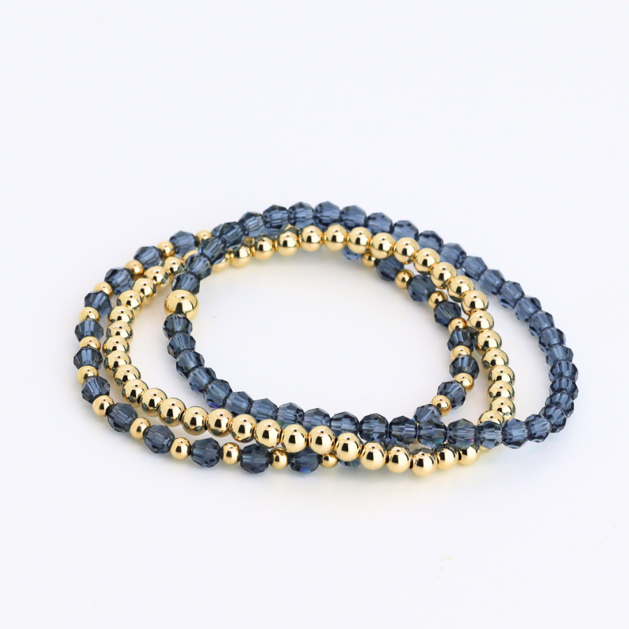 Grace 4mm Light Denim – alternating light denim crystals with 3mm gold beads for easy elegance