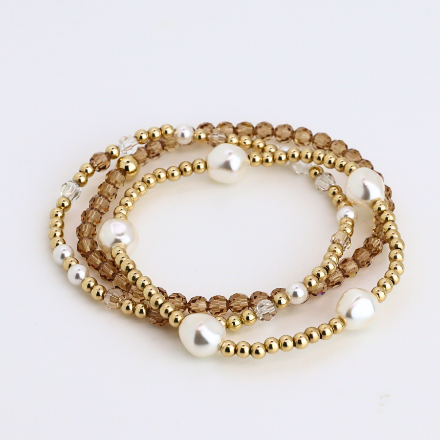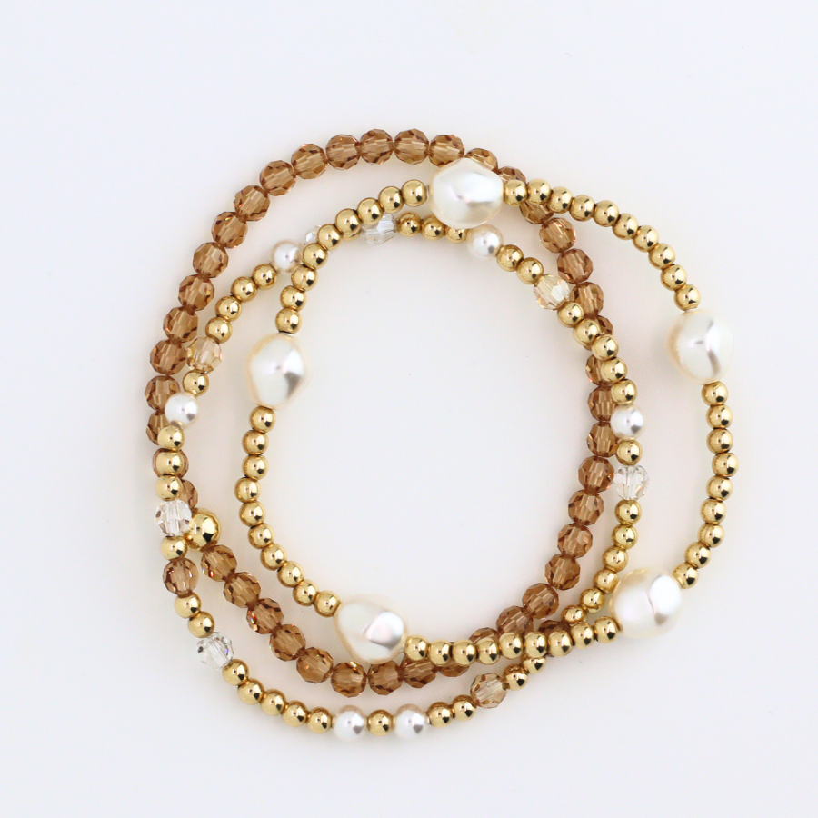 The Golden Glow Stack brings together three stunning bracelets that highlight the beauty of amber and pearl. Featuring the luminous Amber Glow Crystal Bracelet, the sophisticated Classic Radiant 8mm Pearl, and the artfully mixed Hope’s Promise 4mm Amber Glow, this bundle is both versatile and eye-catching. Layer them together for a rich, golden statement or wear individually for subtle elegance. Perfect for elevating your everyday look or adding polish to a special occasion.