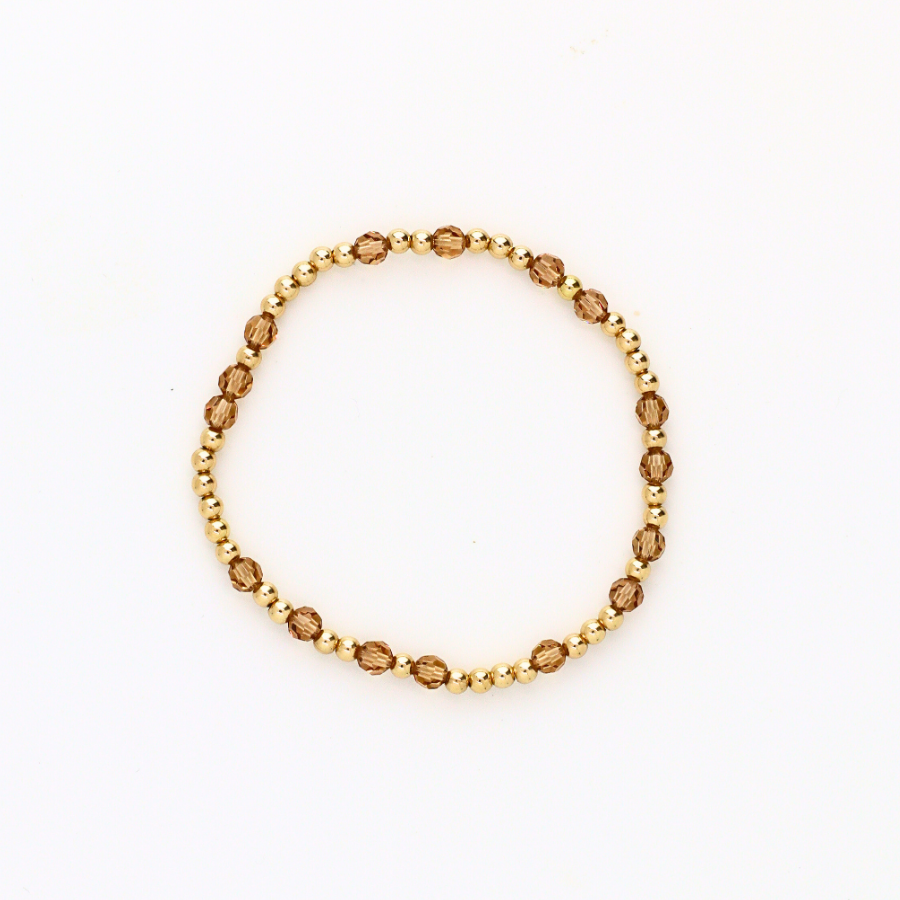 Made with 4mm light colorado Swarovski crystals and 3mm 14 kt gold-filled beads