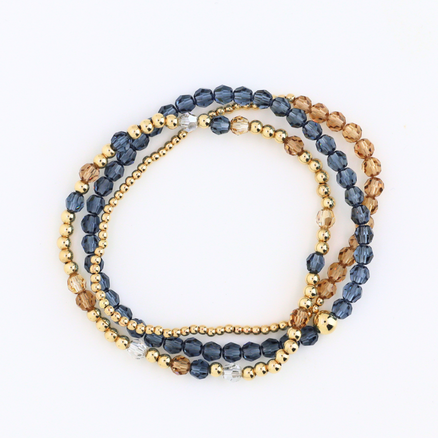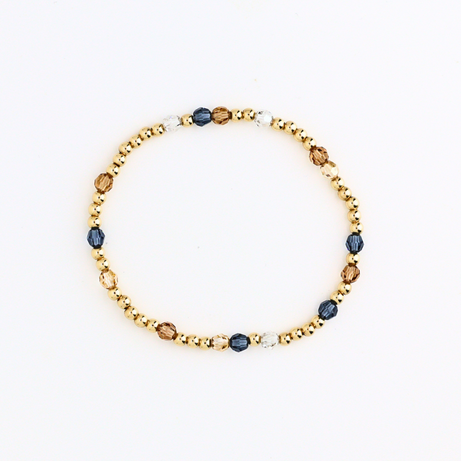 The Hope’s Promise – Amber & Denim bracelet blends warmth and cool sophistication in one timeless piece. Featuring 4mm Swarovski Amber Glow and Denim crystals, accented with 3mm 14K gold-filled beads, this bracelet reflects the beauty of balance: light and dark, classic and contemporary. Designed for layering or standing alone, it’s a piece that carries both meaning and style into every season.