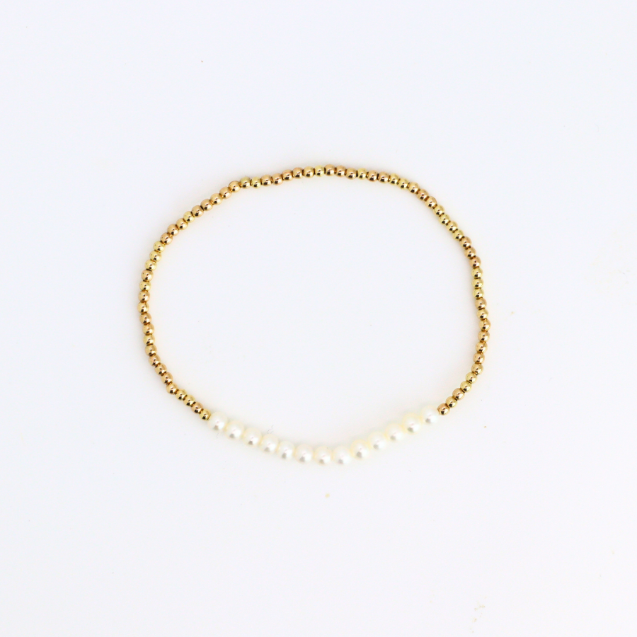 Made with 4mm luminous pearls and 2mm 14 kt gold-filled beads