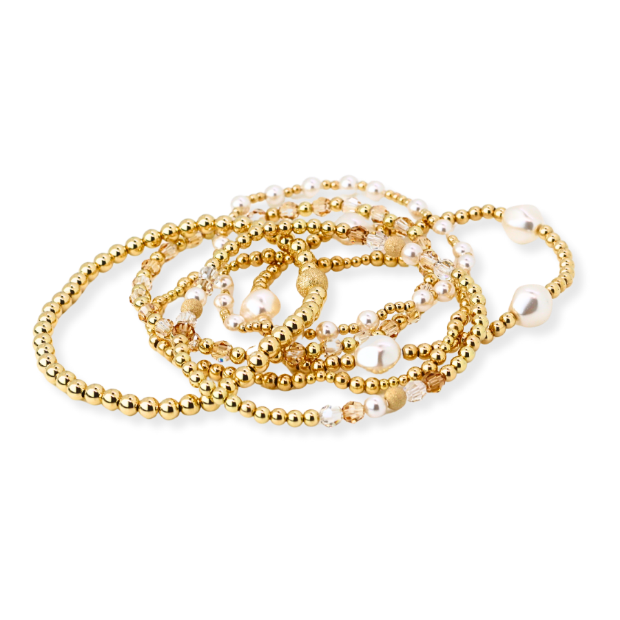 Radiant, refined, and endlessly versatile — the You Are Golden Max Bundle brings together the very best of the season in one stunning, golden collection. This six-piece set layers rich golden Swarovski crystals, luminous Stardust accents, and timeless gold-filled beads for a look that shines with elegance and meaning.